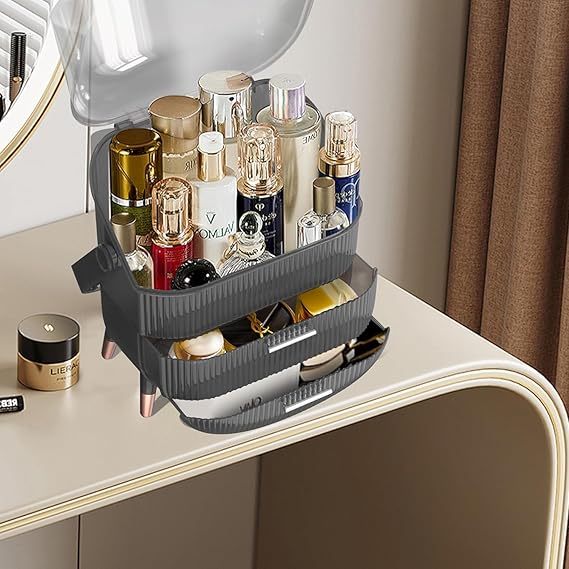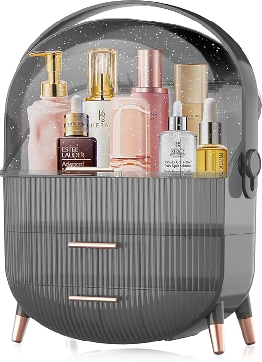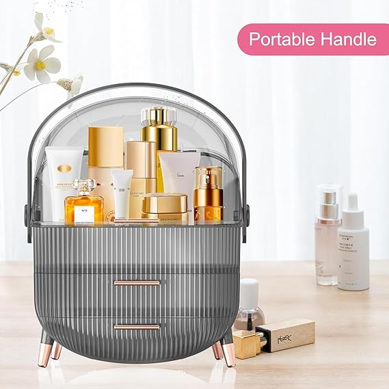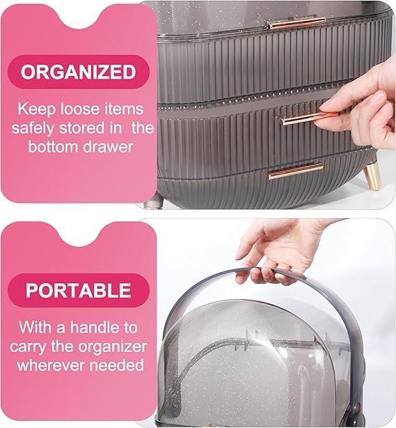 - ★【Transparent window】 —- You can clearly see the placement of the internal items, easy to take. The closed design prevents water and dust from entering. The bottom drawer can hold facial masks, creams, jewelry, etc.